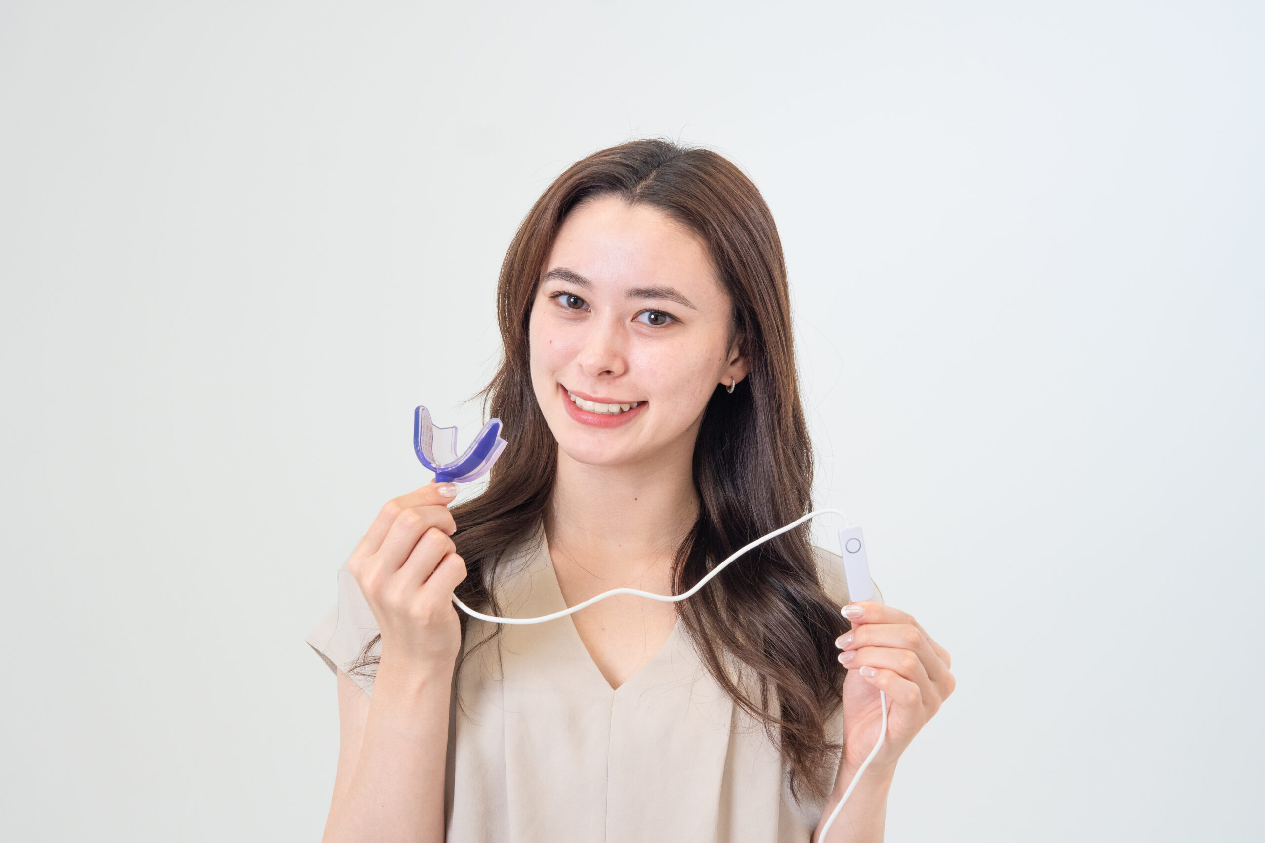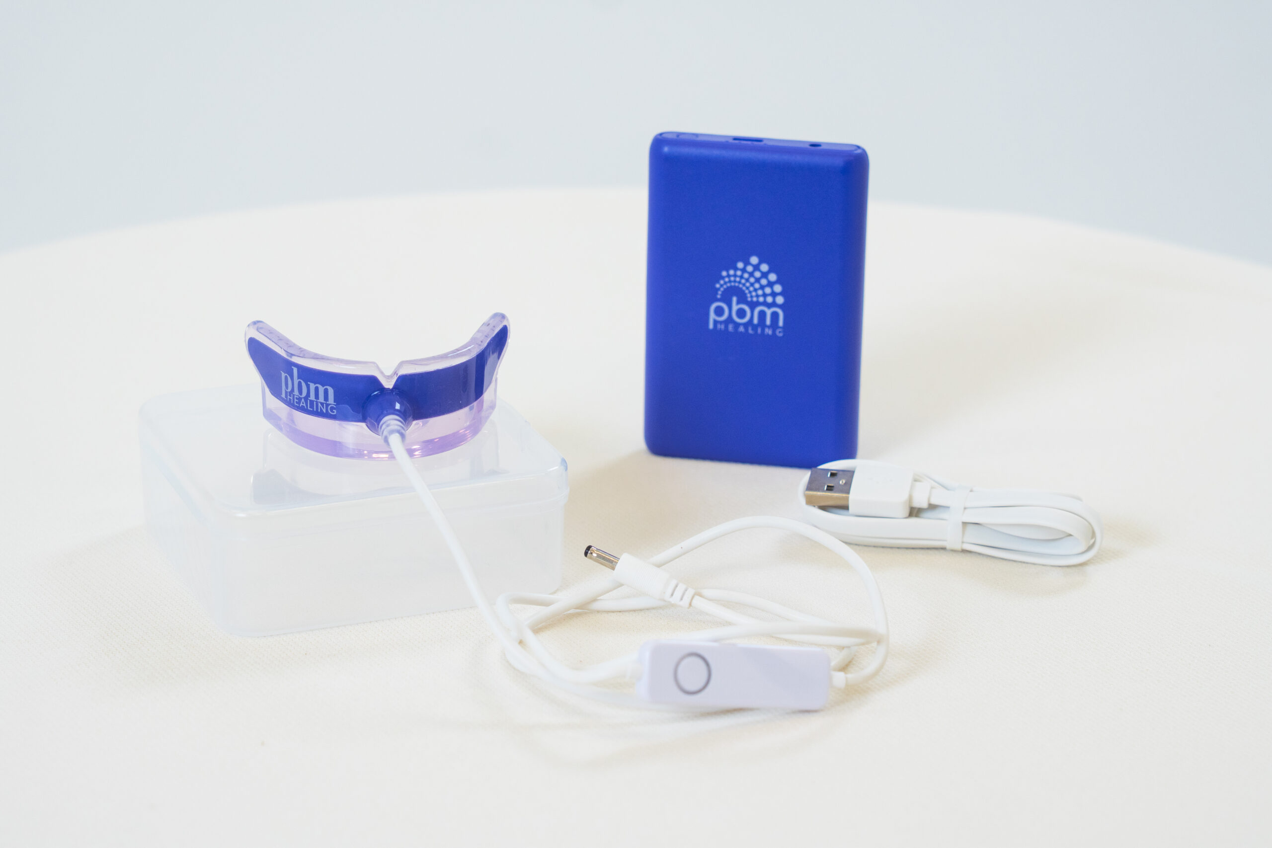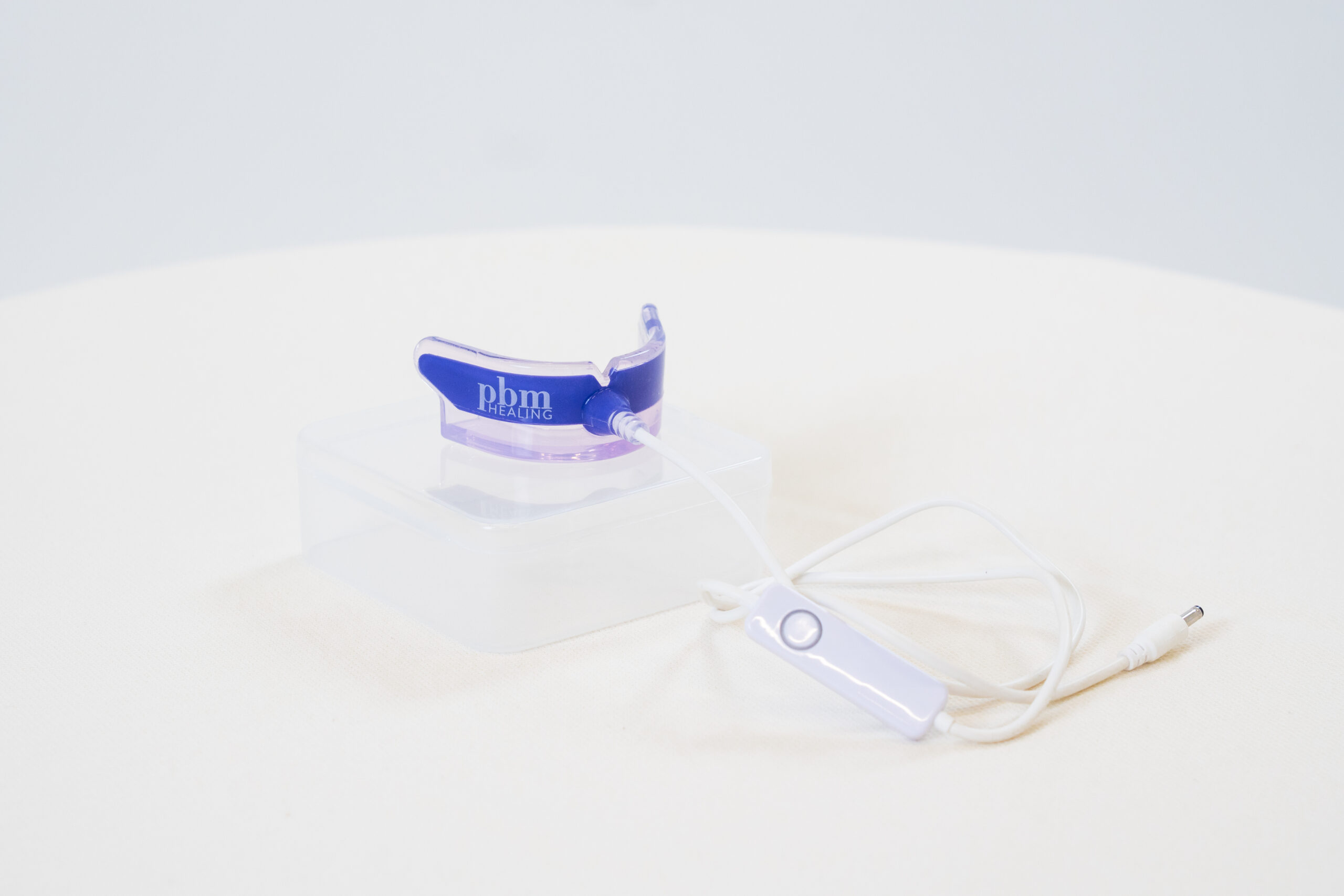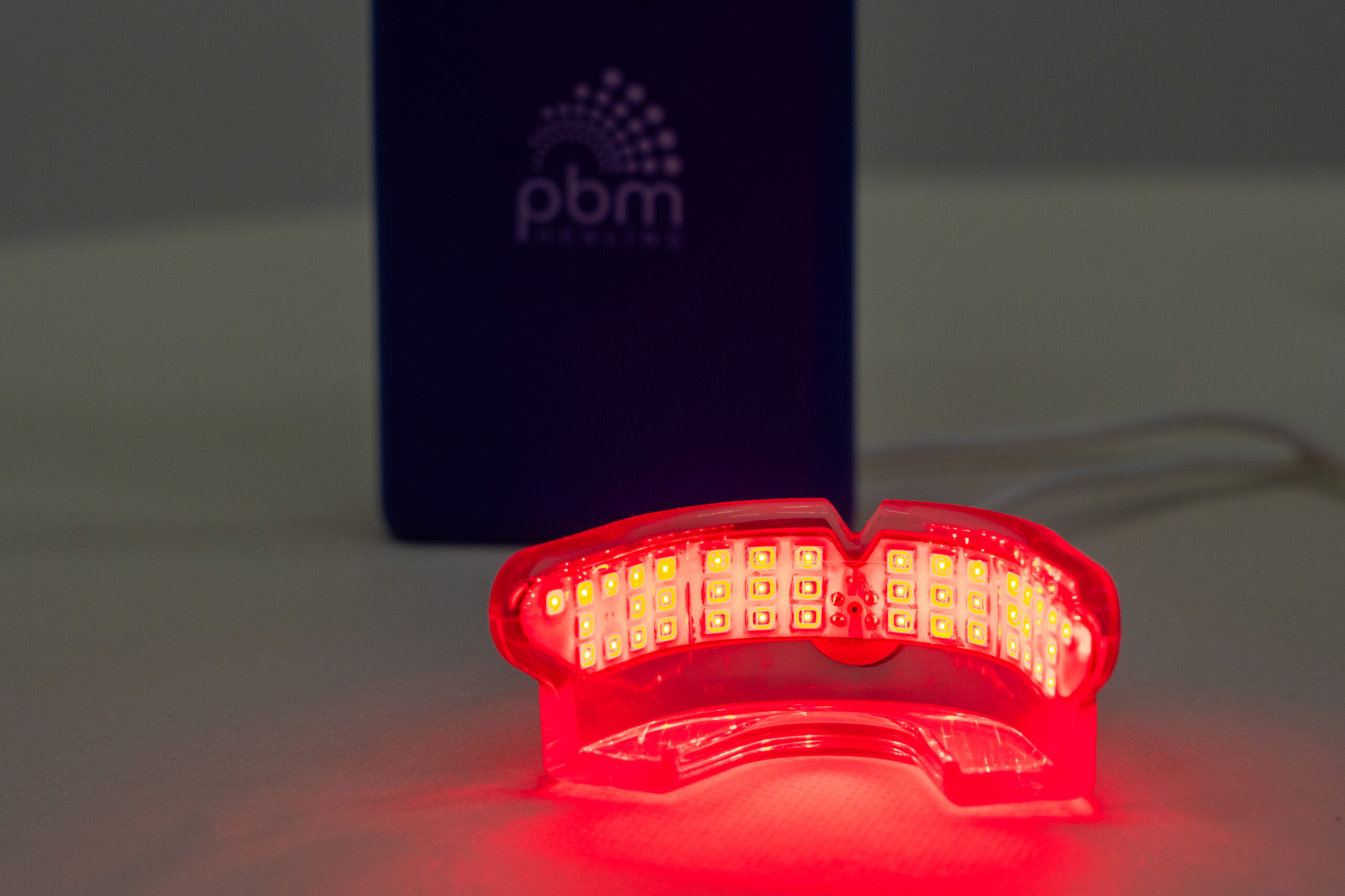 Once the lights are illuminated, place the device into the mouth.